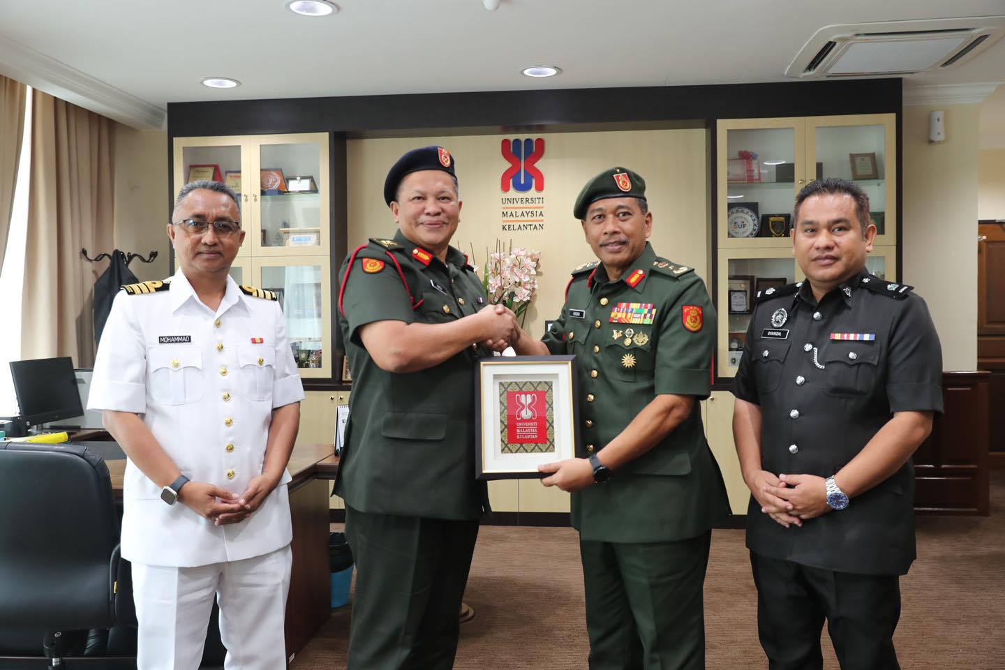 BACHOK 30 April 2024 I Universiti Malaysia Kelantan (UMK) buat julung kalinya menerima kunjungan hormat Pengarah Pengurusan Latihan Markas Pemerintahan Latihan dan Doktrin Tentera Darat, Brigedier Jeneral Dato’ Haji Abu Hasan Assha’ari bin Kamis @ Shaffiee.