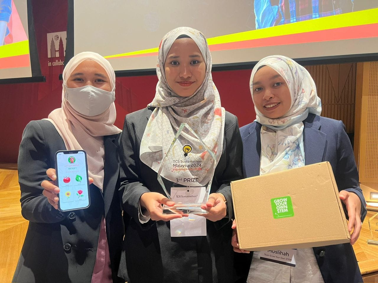 KUALA LUMPUR 3 April 2024 I Tiga pelajar Universiti Malaysia Kelantan (UMK) berjaya membangunkan aplikasi dikenali Grow Your App STEM Kit yang berupaya membantu kanak-kanak prasekolah untuk mengenali asas keperluan tumbuhan yang diintegrasikan dengan applikasi community-based growth tracker.