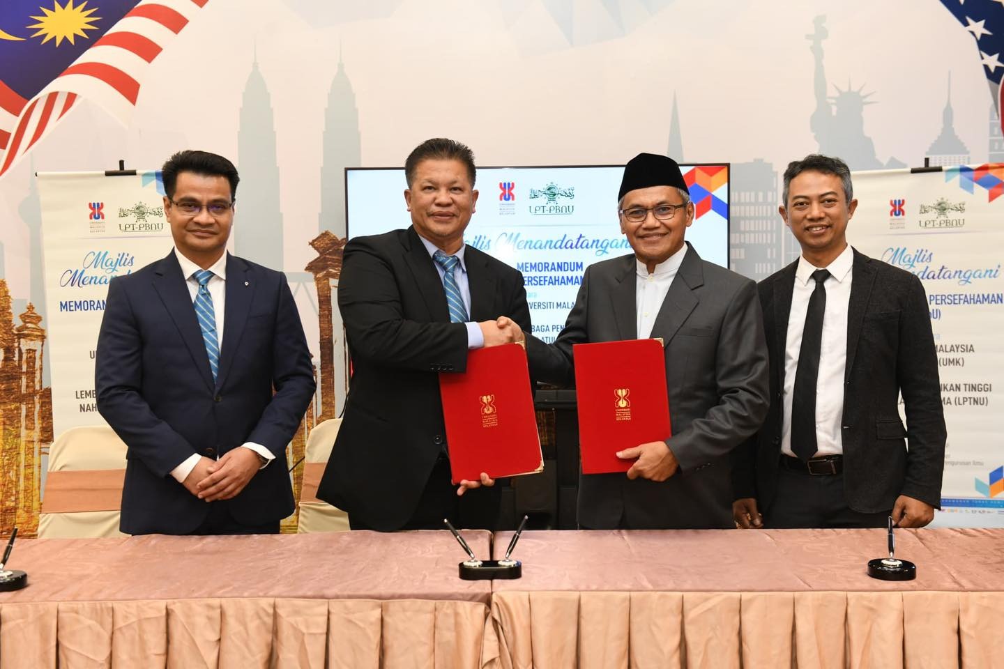MoU tersebut ditandatangani oleh Naib Canselor UMK, Dato’ Prof. Dr. Razli Che Razak dan Ketua LPTNU, Prof. Dr. Hj. Ainul Naim, di American Corner, Pejabat Perpustakaan dan Pengurusan Ilmu, UMK Bachok, Kelantan.