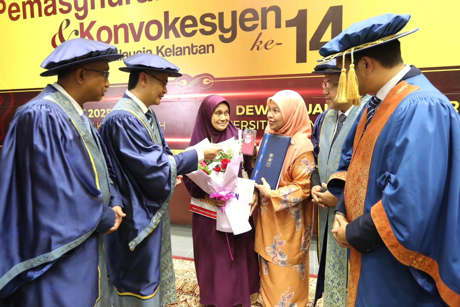 BACHOK 7 Mei 2025 I “Sepatutnya adik yang berada di pentas mengambil ijazah, bukan orang lain,” kata Hasmah Awang Teh, 77, ibu kepada graduan Ijazah Sarjana Muda Keusahawanan (Kesejahteraan) dengan Kepujian di Fakulti Hospitaliti, Pelancongan dan Kesejahteraan (FHPK), Allahyarham Nursuhaida Ibrahim, 24.